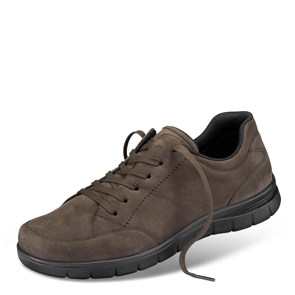 Comfortabele sneaker van zacht nappaleer met stevige hiel en zachte randpolstering. Door de derby-vetersluiting wijd te openen en gemakkelijk aan te passen. Binnenin voering van zacht Dry-Climmicrovezel. Op de oneindig comfortabele infinity-zool van PU met een uitneembaar voetbed.
