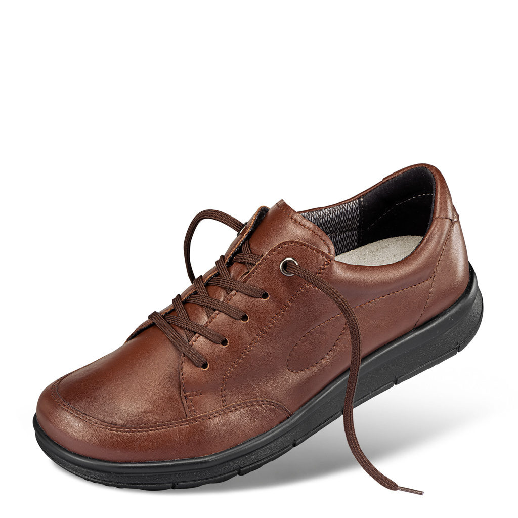 Derby-pasvorm: Comfortabel voor elke wreefhoogte. De chique derby-snit is niet voor niets één van de meest geliefde pasvormen. U kunt de kenmerkende derby-sluiting extra wijd openen comfortabel aantrekken en deze individueel aanpassen. De hoge vetersluiting zorgt voor een goede stevige steun. Ideaal voor de hogere wreef!