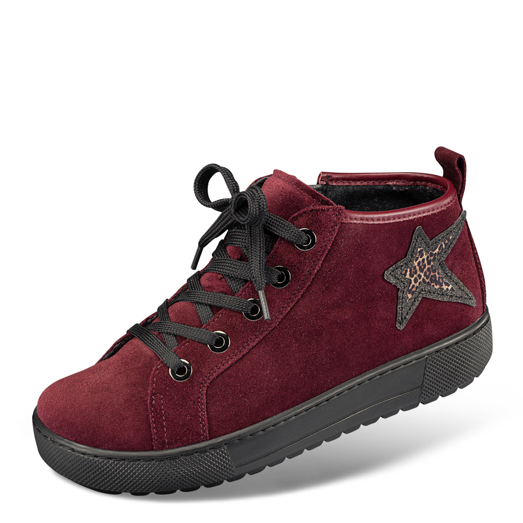 Comfortabel en licht laarsje van zacht suède met stijlvolle ster-applicatie aan de buitenzijde. Praktische derby-vetersluiting met rits en vilten voering. Op de sneaker-soft-zool vanPU schuim met een uitneembaar voetbed.
