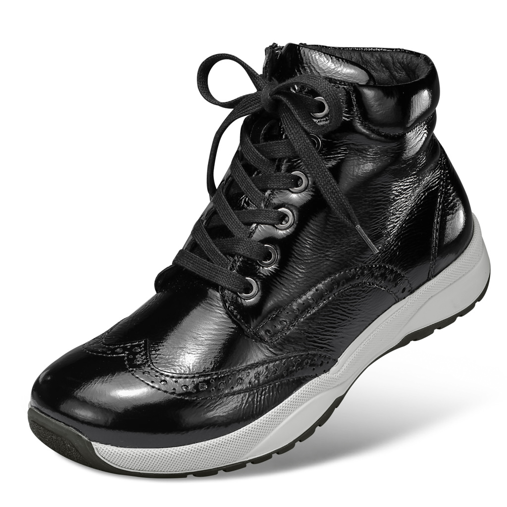 Comfortabel laarsje op de soft-move-zool van TPU. Stabiele steun door de wijd te openen derby-vetersluiting. Aan de zijkant een ritssluiting om gemakkelijk aan te trekken. Flexibele strobel-maakwijze zachte polstering aan de tong en rand. Binneninvolledig walkloden voering ook op de binnenzool van hetuitneembare voetbed