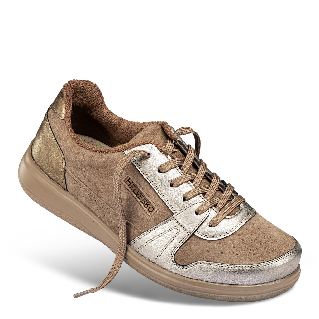 Luxe extra brede sneaker van geitenleer met diepe enkelinzetten. Aan de schacht zacht gepolsterd en binnenin zachte badstoffen voering. PU-sensitiv-zool met een uitneembaarvoetbed.