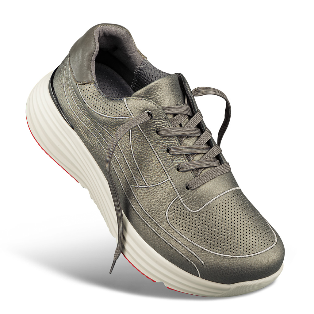 Op de nieuwe ultralichte booster-zool van TPU is elke stap een genot: comfortabele sneaker met prachtige details en perfecte pasvorm. Van zacht leer met metallic-effect mooie siernadenanatomisch gevormde leest en actief ademende sport-mesh-voering. Rondom zacht gepolsterd met een uitneembaar voetbed.
