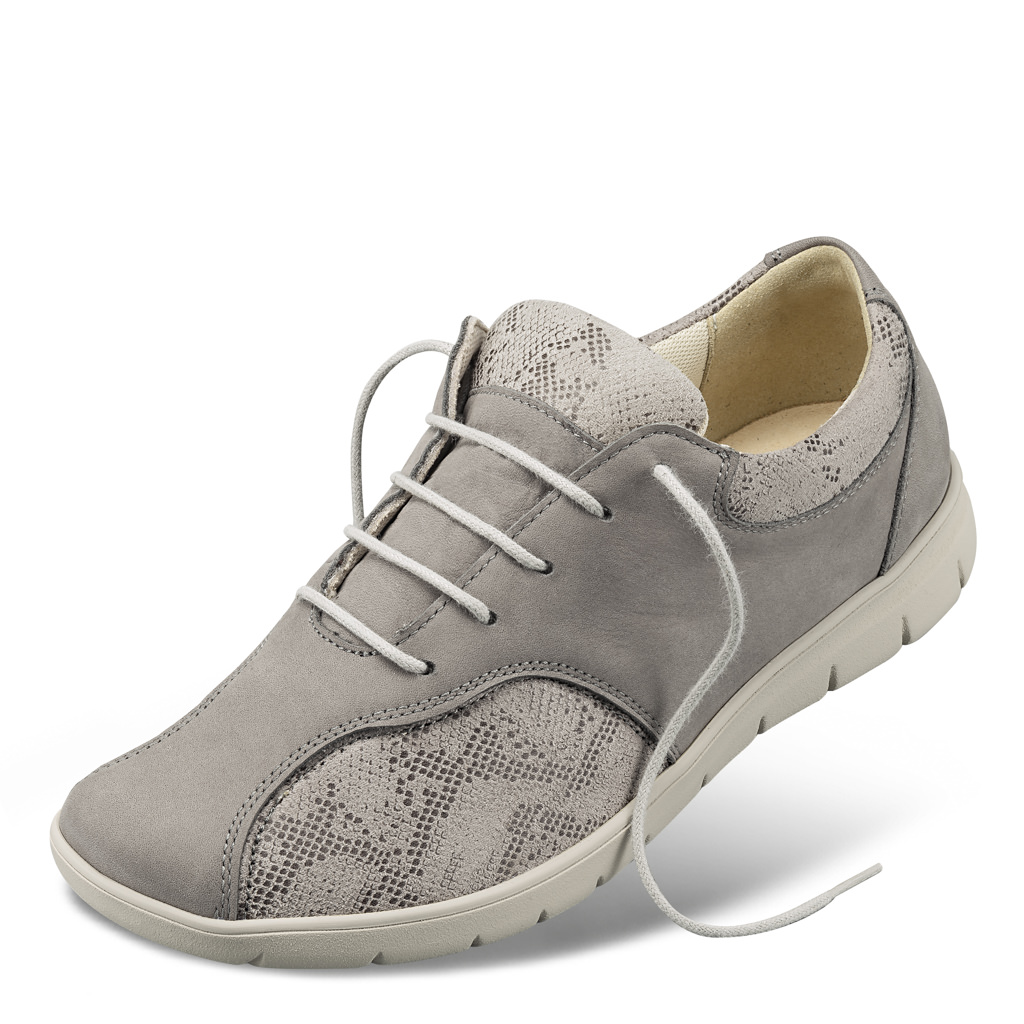 Zachte oplossingen voor gevoelige voeten! Een zege voor gevoelige voeten de elastische zijkanten bieden meer ruimte ideaal bij o.a. Hallux Valgus. De elastische rekzones worden hier gecombineerd met zacht leder. Het flexibele Dry-Clim-microweefsel past zich optimaal aan de voet aan.