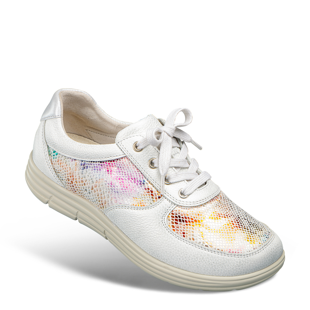 Een elastische lichte sneaker om te verwennen: van leer metleren voering gepolsterde schacht en tong daarbij modieuzeelastische inzetten met voering van gepolsterde microvezel.Flexibele swingzool van zacht verend PU uitneembare duoinlegzool voor dubbele demping.