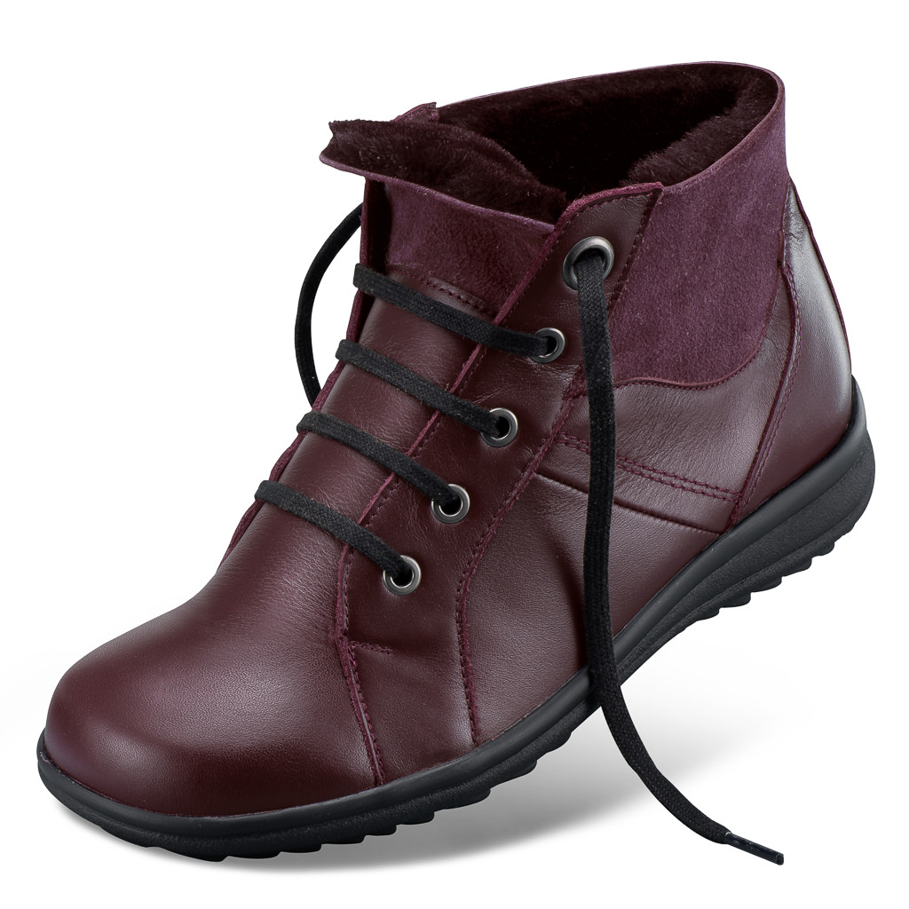 Laarsje van nappaleer met voering en zachte schachtinzet van lamsvel in chique wijd te openen derby-pasvorm. Het uitneembare BioFit-voetbed heeft een warme deklaag.