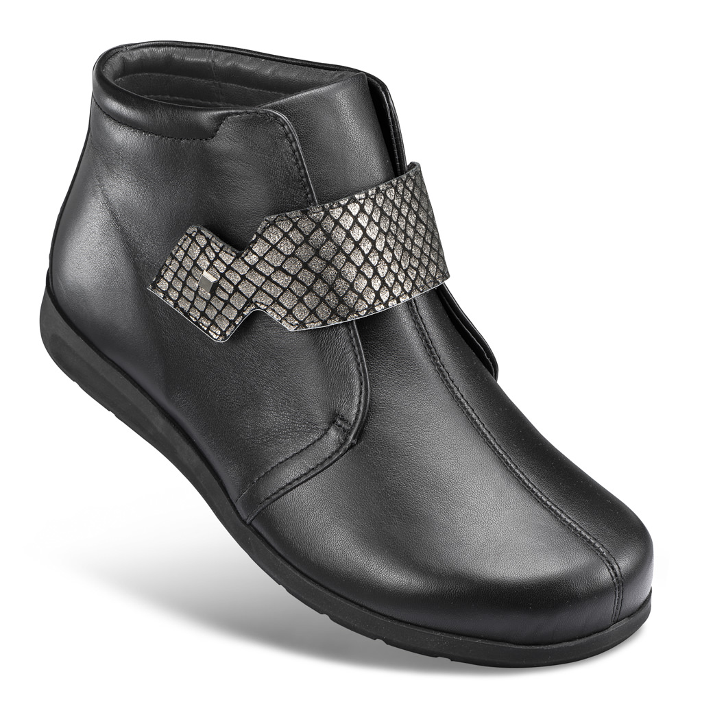 Daar waar de voet het breedst is krijgt hij vooral veel ruimte! Van zijdezacht lamsnappaleer met gepolsterde rand. Warme voering engeschikt voor eigen inlegzolen.