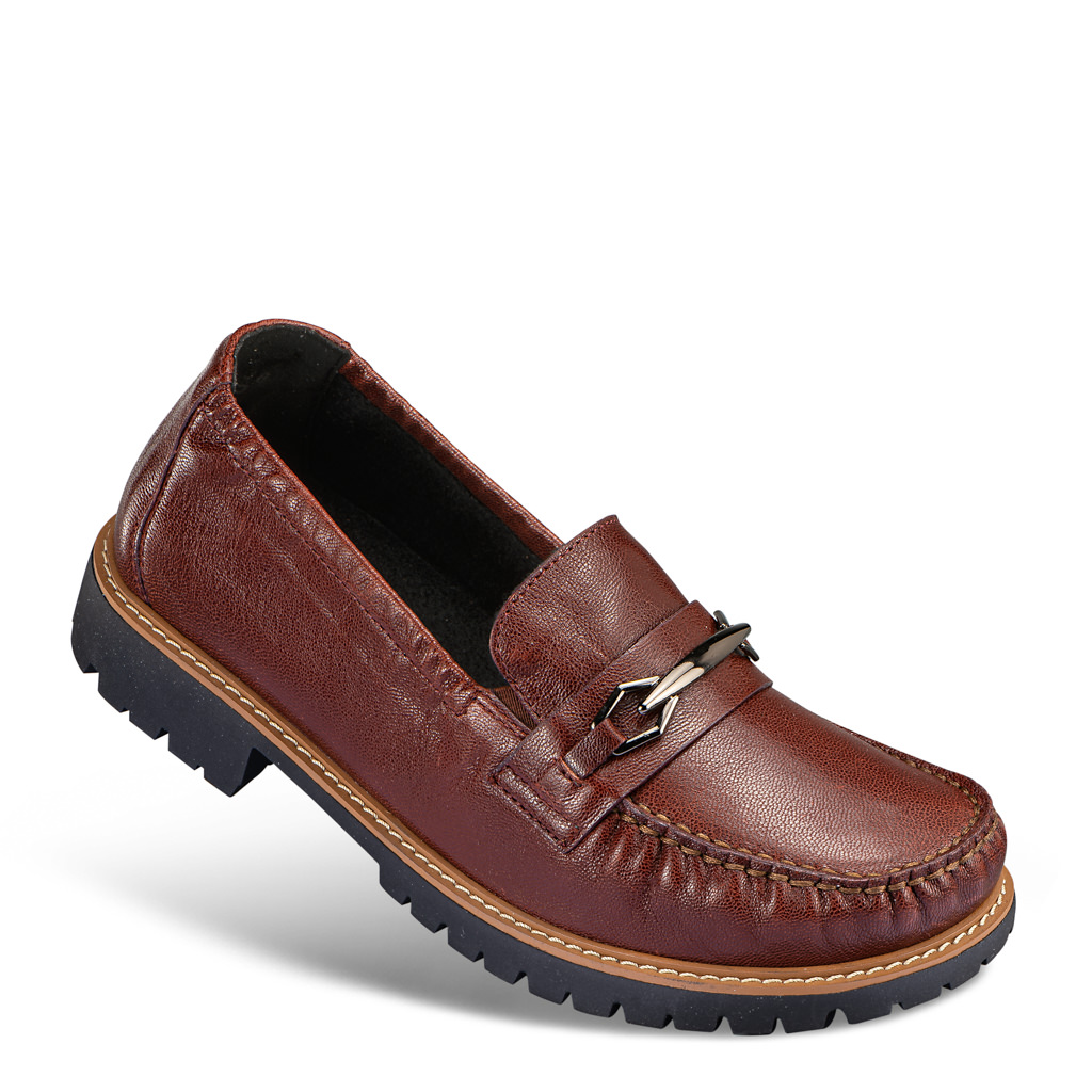 De vrouwelijke college instapper met de trendy dikke profielzool van licht TPU is een klassieker met mooie decoratieve gesp. Van zacht lamsleer met elastische inzet voor een perfecte pasvorm. Voering van warm vilt. Uitneembaar voetbed.